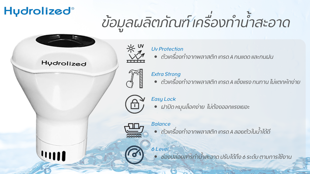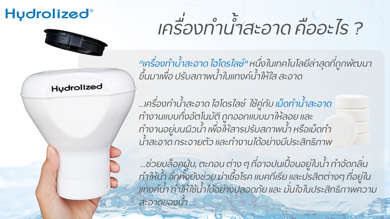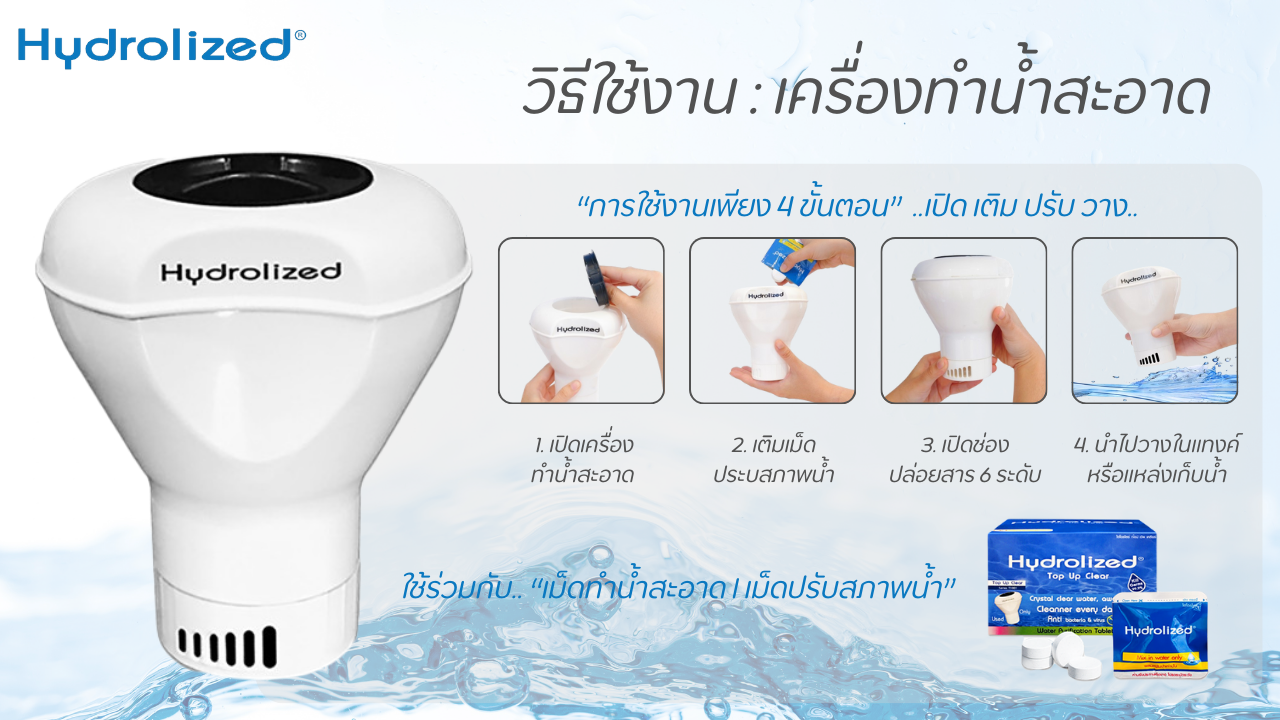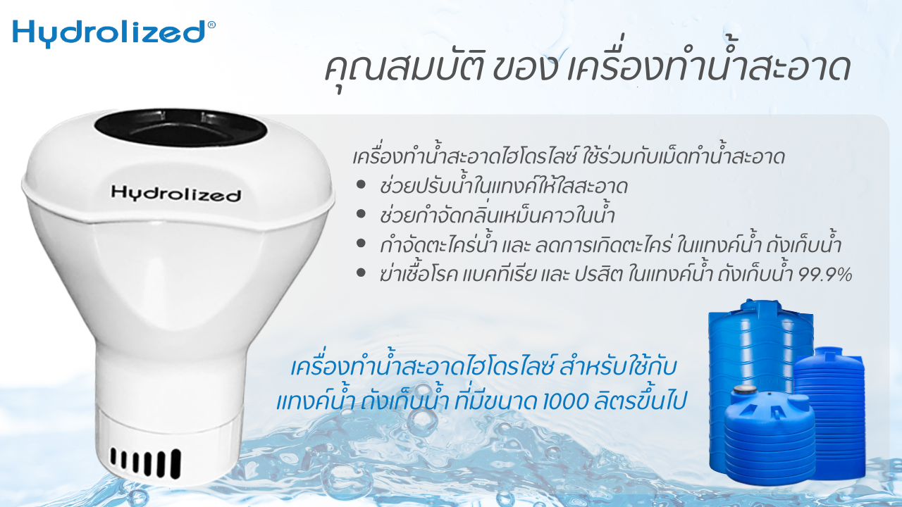 "น้ำ" เป็นทรัพยากรสำคัญ แต่น้ำที่เราบริโภคในชีวิตประจำวันนั้นอาจมีสารปนเปื้อนที่เรามองไม่เห็น เครื่องทำน้ำสะอาดไฮโดรไลซ์ ได้รับการพัฒนามาเพื่อตอบสนองความต้องการในด้านความสะอาดและความปลอดภัยของน้ำใช้ภายในครัวเรือน