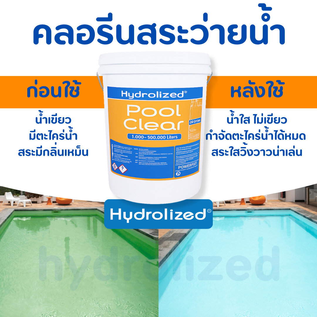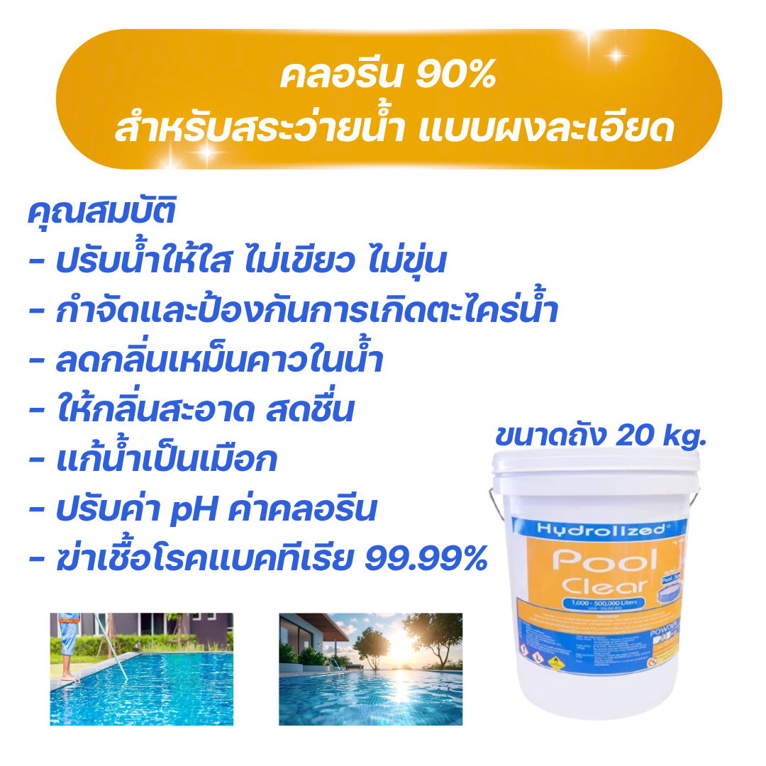 คลอรีนสระว่ายน้ำ คลอรีนผง90% ไฮโดรไลซ์ พลู เคลียร์ ถัง 20 kg.