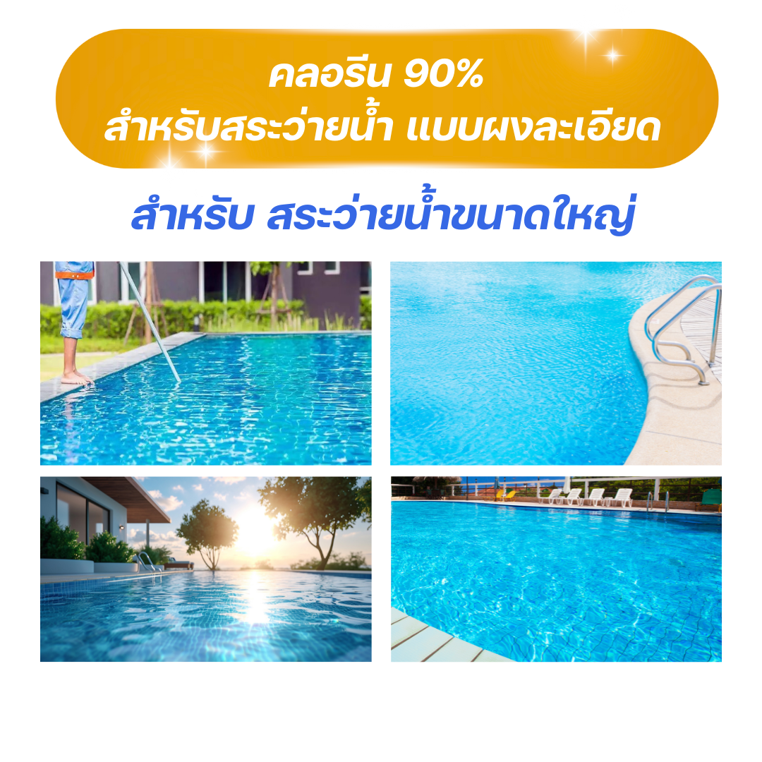 2. นำไปเทรอบๆ สระวายน้ำ หรือ เติมในเครื่องจ่ายคลอรีน